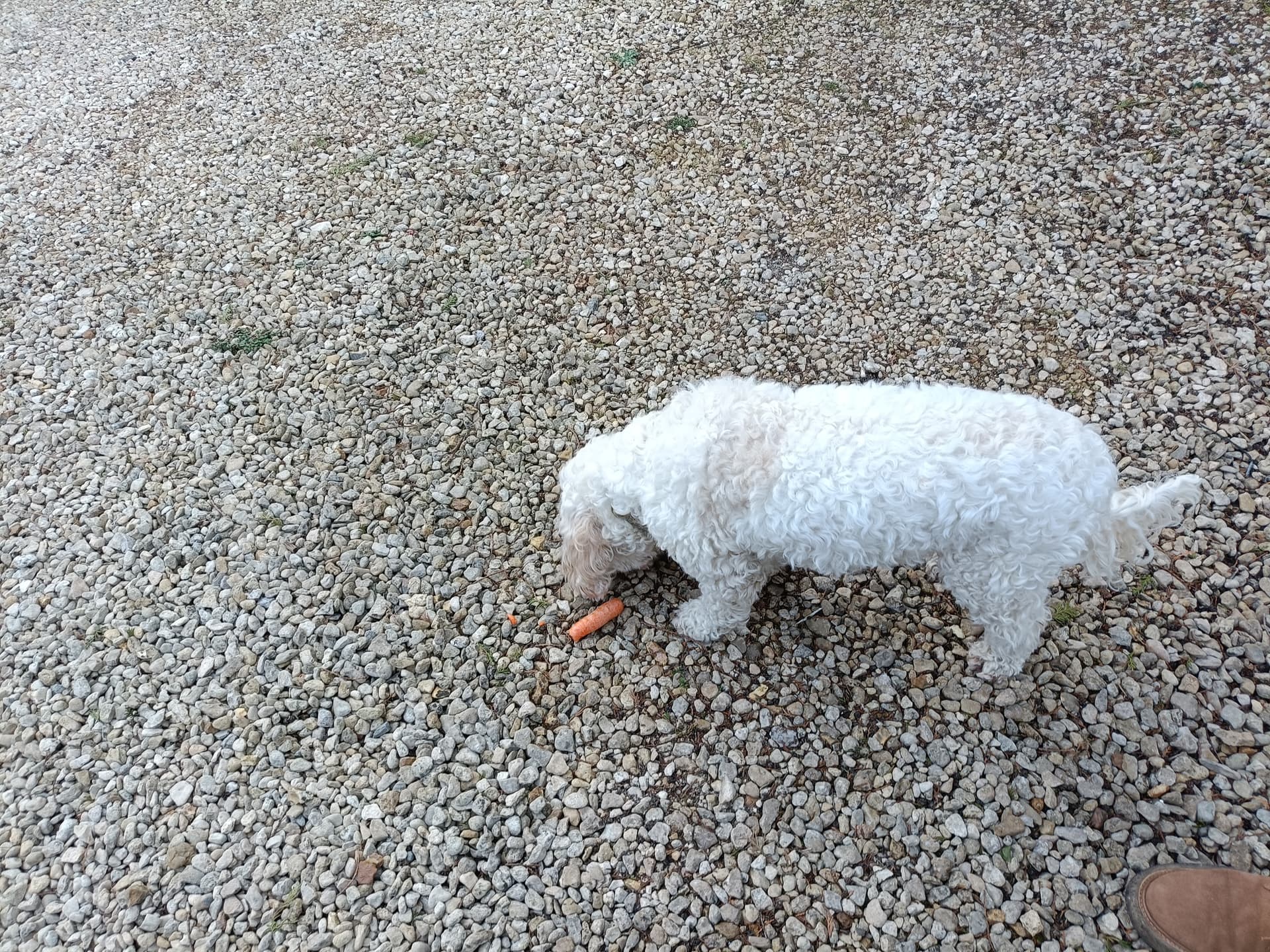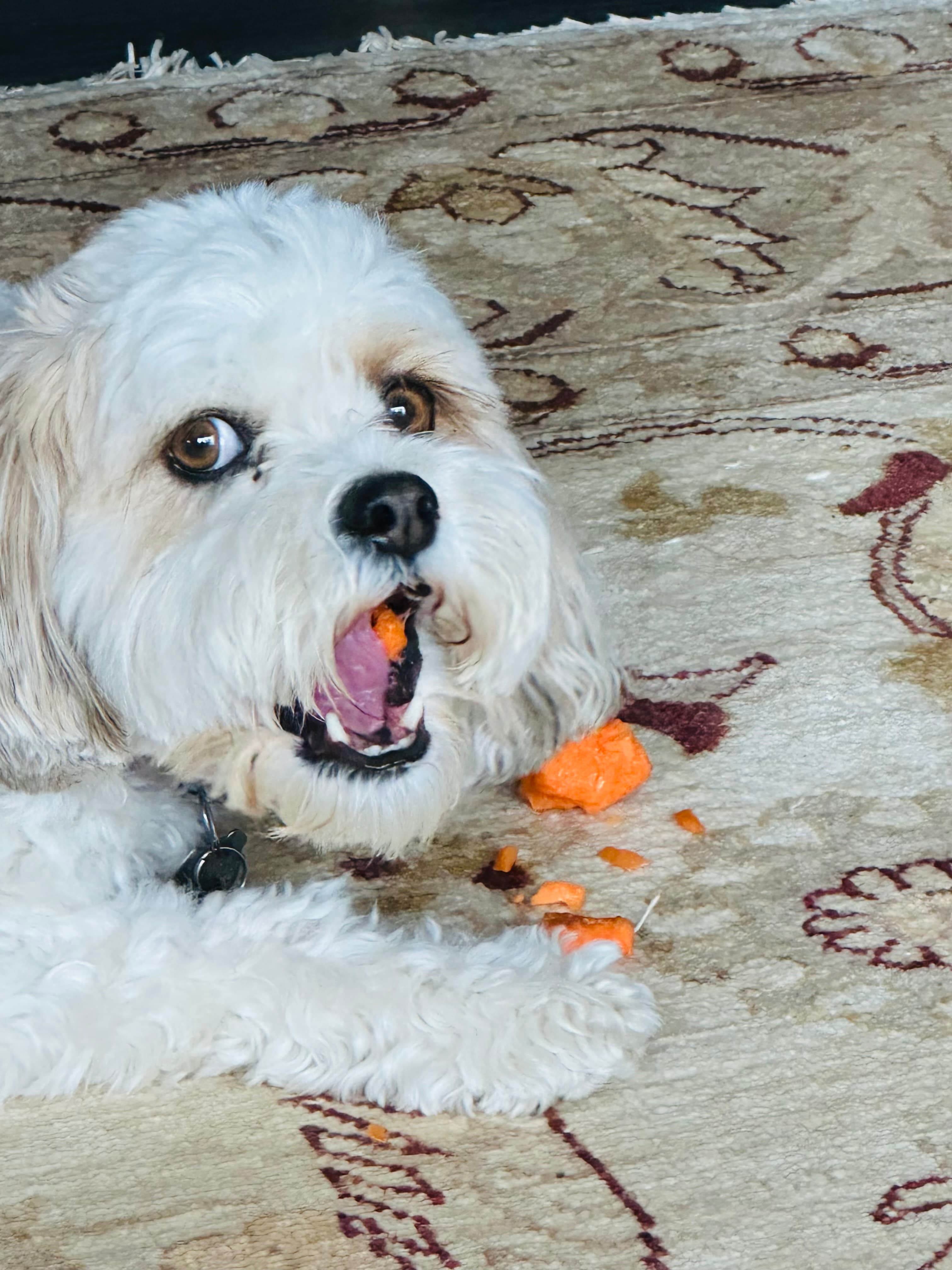 Many dogs I’ve encountered have liked carrots. I sat a senior one who was blind and deaf, and he still enjoyed them. Problem was, he chewed super slowly with his few remaining teeth, and he didn’t realize that the other dog was stealing from his share.