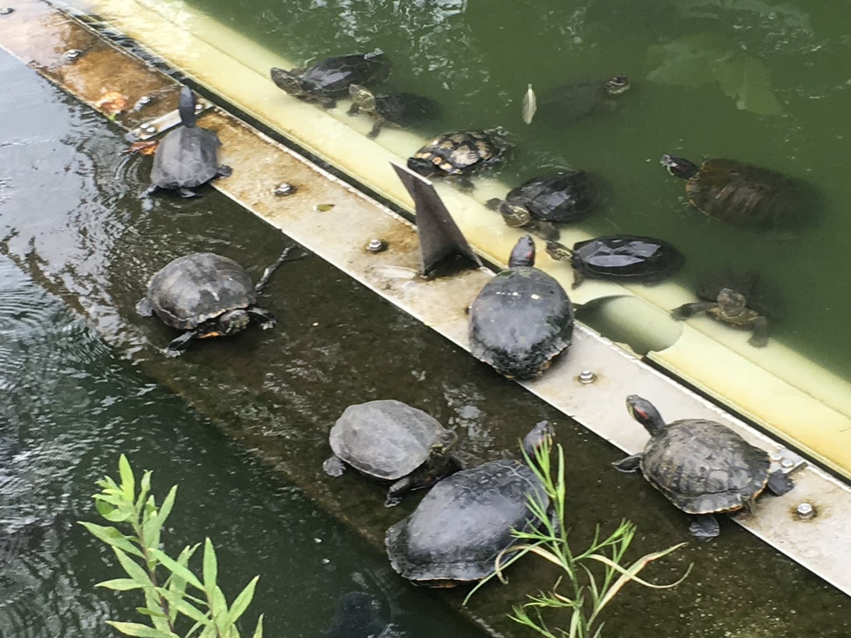 Not a pet sit but a bale of turtles hanging out in Ueno Park in Tokyo.