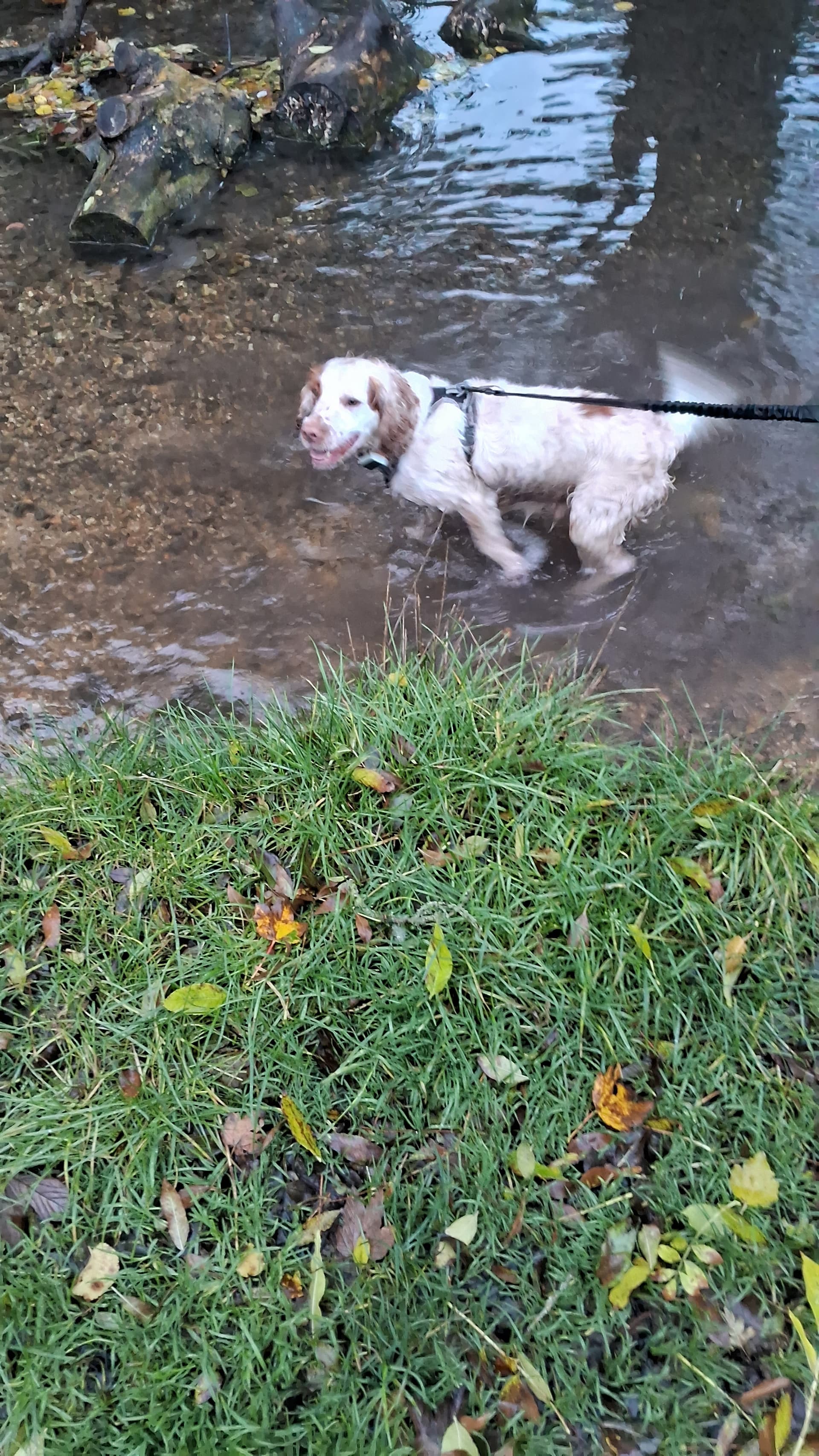 We don’t have related photo to share but we’ve come across plenty muddy (and snowy) dogs. We looked after two working cocker spaniels (well trained but unquestionably active). After each of two walks per day - plentiful mud, brooks and mess - then they were thoroughly hosed down using an external tap. Twice per day! Dogs did not mind water hose at all as they were clearly happy
