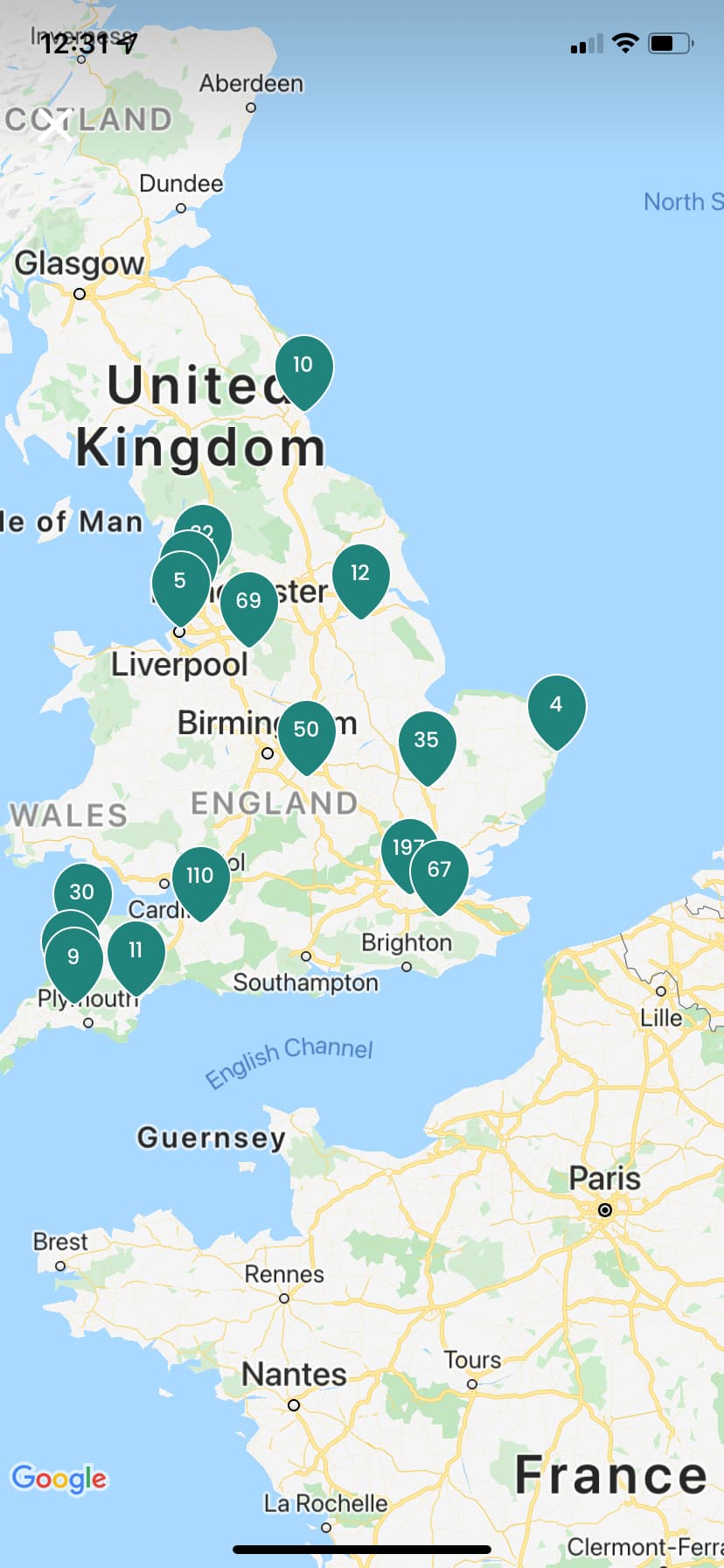 @mars I just did a search for ‘England’ on my iPhone. See the attached photo, where you’ll see the option of ‘Map’ at the bottom. When I clicked on that, what I saw is in my second photo. I’m guessing that, in this case, phone screen size might dictate how much the map covers (rather than just what I’d searched).