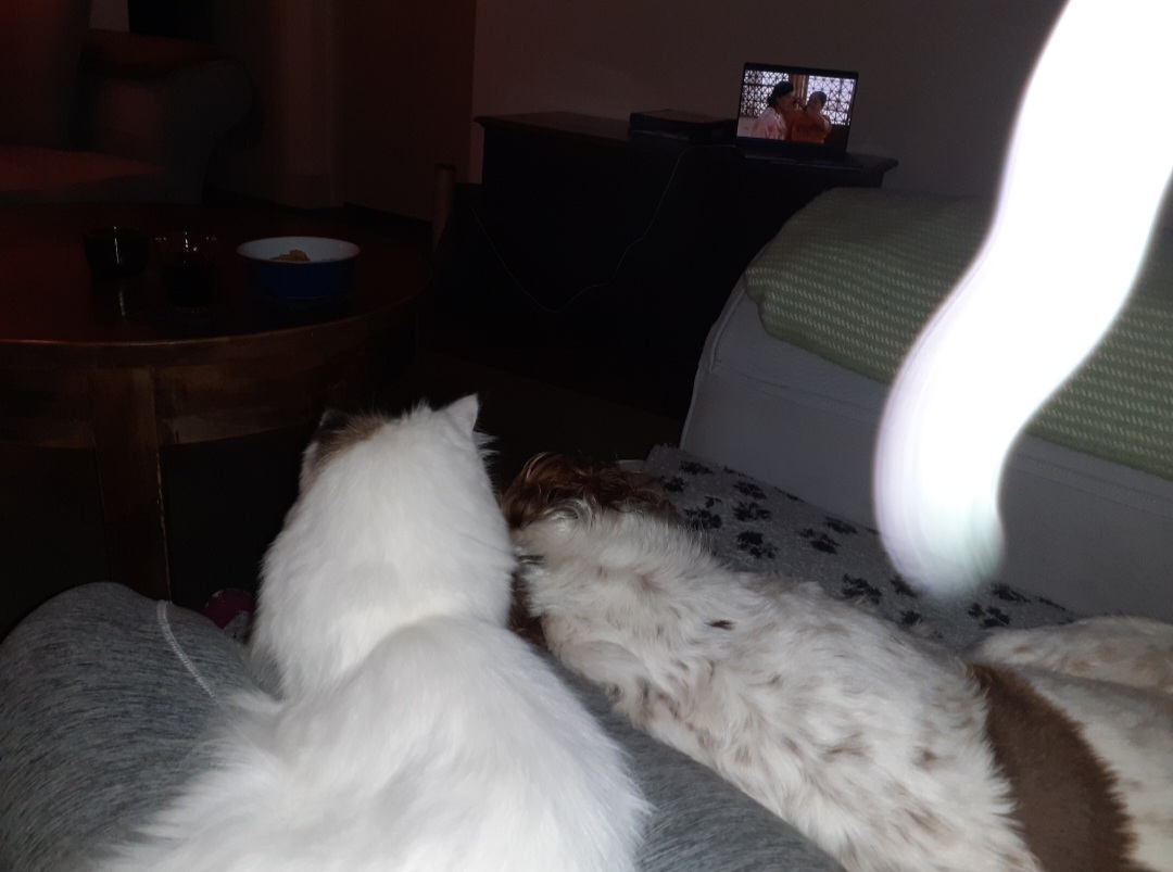 I spooked myself with this sequence of photos taken whilst watching TV with the pets on a house-sit - no idea what the white apparition that suddenly appeared was!